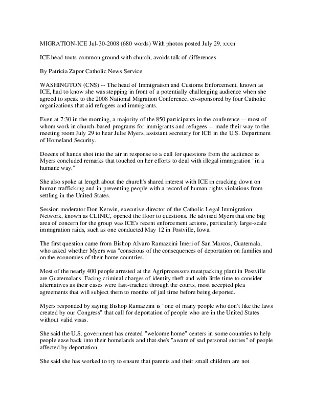 ICE head touts common ground with church, avoids talk of differences