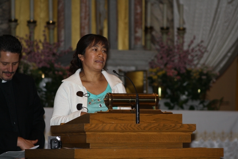 Rosa Zamora speaks at the Interfaith Prayer Service, Immaculate Conception Catholic Church